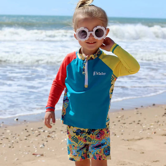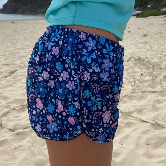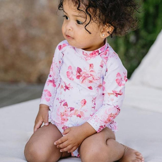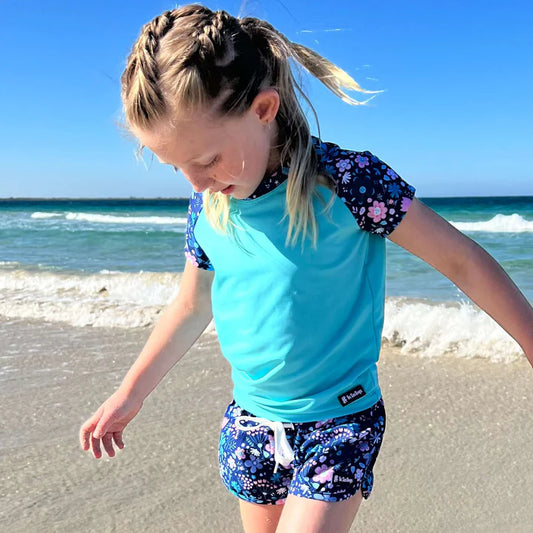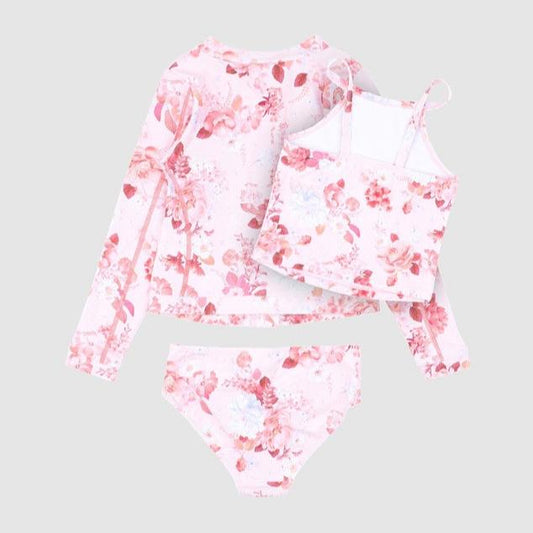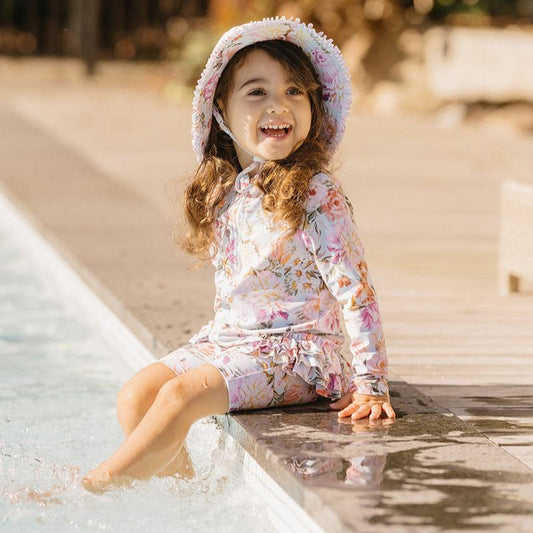 Girls Swim Short & Long Sleeve Rashie Swim Set- Flower Power