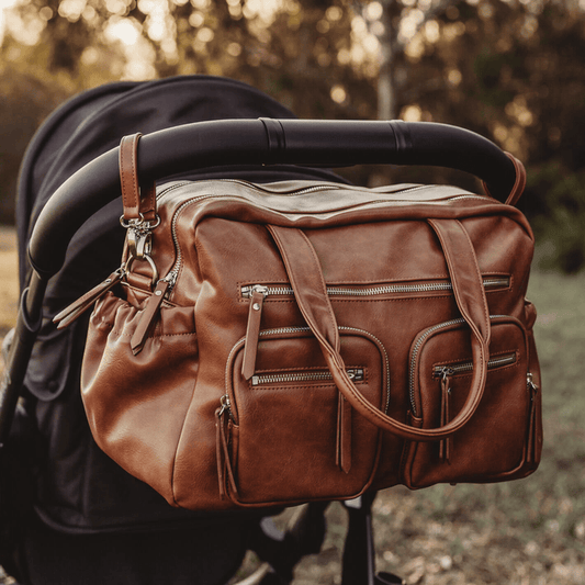 Multitasker Pram Caddy - Chestnut Brown Vegan Leather
