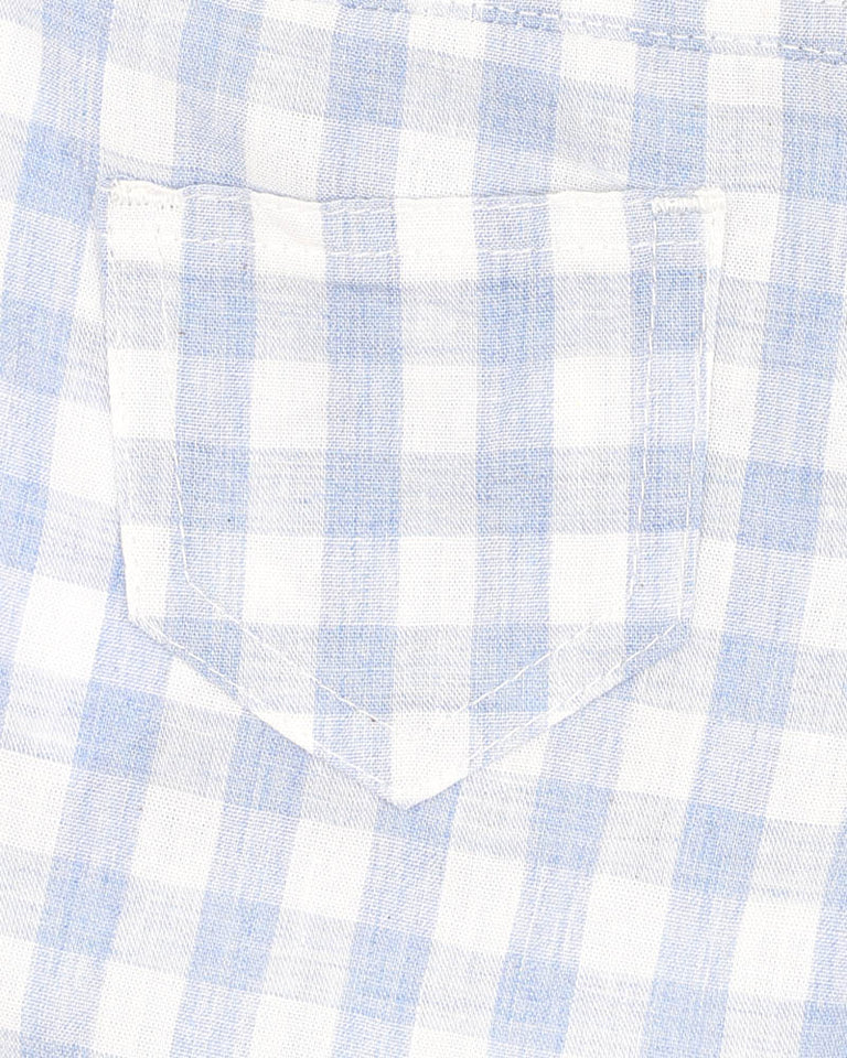Whether it's a sunny afternoon at the park or a family day out, our Axel Check Shorts bring effortless charm to any little wardrobe. Crafted from soft cotton in a timeless blue gingham, these shorts feature an elasticated waistband with a drawstring for a comfy fit, mock pockets with wood like buttons, and neatly cuffed hems that give a smart finish. Pair with the Axel Tee, Axel Bodysuits or Axel Check Sunhat for a matching summer look.